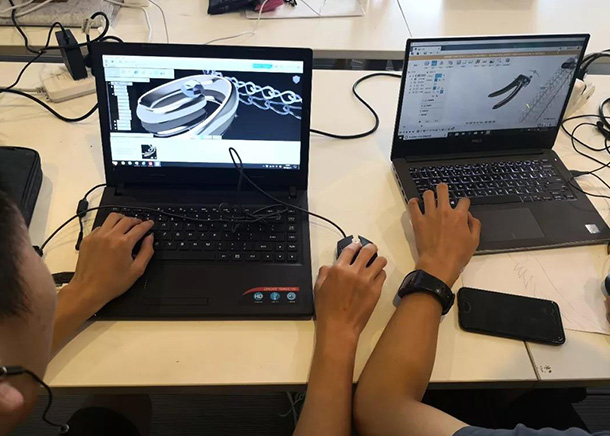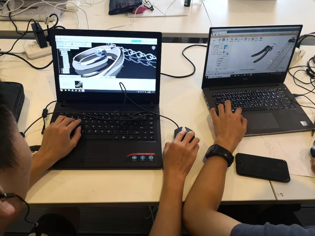 方案不断的修改完善,草图变得越来越清晰,创意更加立体化。确定最终的设计方案后,同学们在软件中创建模型。